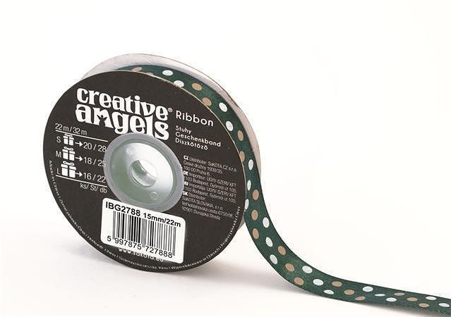 Saténová stuha, tmavě zelená s puntíky, 15 mm x 22 m, IBG2788