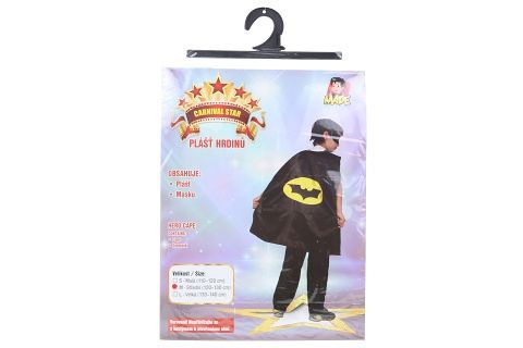 Karnevalový kostým - Batman. Velikost: Střední (120 - 130 cm). Obsahuje: plášť a masku.