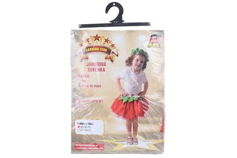 Karnevalový kostým - jahoda. Velikost: pro malé děti 80 - 92 cm). Balení obsahuje: sukni a ozdobu do vlasů.