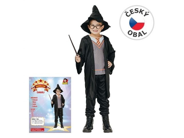 Chystáte se s dítětem na karneval, dětskou párty nebo na významnou kostýmovou událost ve škole či školce? Potom je na místě důkladný výběr vhodného kostýmu. Zkuste se zamyslet, jaký konkrétní převlek vystihne dětskou osobnost, významnou vlastnost, jaký kostým vašemu dítěti bude nejvíce slušet. Bude to kostým komiksového hrdiny, pohádkový kostým, převlek znázorňující nějaké povolání anebo krásné šaty pro princeznu? Při výběru kostýmů a tvorbě případných doplňku zažijete s dítětem spoustu zábavy. Odměnou vám i vašemu dítěti bude radost a spousta zážitků. Staňte se společně hvězdou karnevalu. Šaty na karneval - kouzelníkVelikost: Pro malé děti (120 - 130 cm)Obsahuje: Klobouk, blůzu, kabát, kalhotyDoporučený věk: 3+
