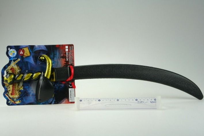 Šavle plastová o délce cca 58 cm s poudrem a páskou přes oko na gumičku pro malé piráty.