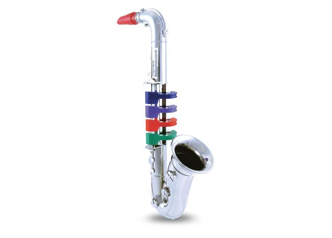 Saxofon se 4 barevnými klávesami / notami