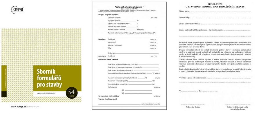 obsahuje formuláře pro přípravu stavby a staveniště, realizaci stavby, přejímky a kolaudaci stavebního díla