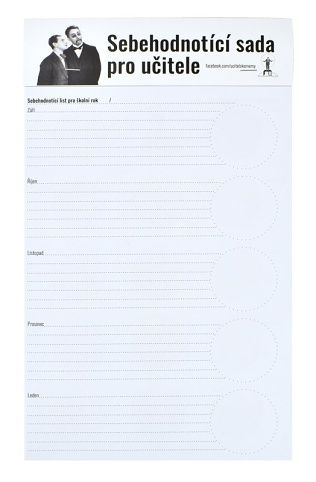 Sada obsahuje hodnotící list s jednotlivými měsíci. Do nich si můžete zaznamenat to, co pro vás bylo v daném měsíci nejzásadnější. Vedle místa na poznámky najdete okénko, do něhož si nalepíte jednu z 15 samolepek, která nejvíce charakterizuje vaše rozpoložení ve vybraném období. Garantujeme, že vás vyplněné hodnotící listy pobaví i po letech a budou vítanou rekvizitou na všech školních akcích.