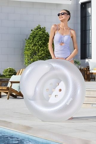 Nafukovací sedátko Měsíc je určené pro pohodlné relaxování ve vodě a nabízí rozměry 107×107 cm, což poskytuje dostatek prostoru pro pohodlné usednutí i opření. Díky své konstrukci s dvěma vzduchovými komorami je sedátko stabilní a bezpečné během používání. Maximální nosnost sedátka je 100 kg, což zajišťuje vhodnost pro většinu dospělých uživatelů. Sedátko je vyrobeno z průhledného materiálu s perleťovým efektem, který jemně odráží světlo a dodává produktu elegantní vzhled. Povrch je zdobený jemným geometrickým vzorem, který zároveň zvyšuje estetickou hodnotu a příjemný dotyk. Sedátko má pohodlnou nafukovací opěrku hlavy, která umožňuje uživateli bezpečně a pohodlně opřít hlavu a relaxovat. Vnitřní sedací plocha je vybavena sedmi otvory, které přispívají k lepší stabilitě a odvodnění. Vzduchové ventily jsou umístěny tak, aby usnadnily rychlé nafouknutí i vyfouknutí produktu a zároveň zajistily těsnost. Součástí balení je také opravná záplata, která umožňuje snadné opravy případných drobných poškození materiálu. Sedátko je vhodné pro použití v bazénech i na jiných vodních plochách a patří do kategorie venkovních a sportovních hraček, konkrétně do segmentu nafukovacích bazénů, člunů, kruhů a rukávků. Celkově je nafukovací sedátko Měsíc praktickým a stylovým doplňkem pro letní radovánky ve vodě, který kombinuje komfort, bezpečnost a estetický design. Jeho snadná přenosnost a rychlá manipulace umožňují využití doma i na dovolené, kde poslouží k odpočinku a zábavě ve vodním prostředí.