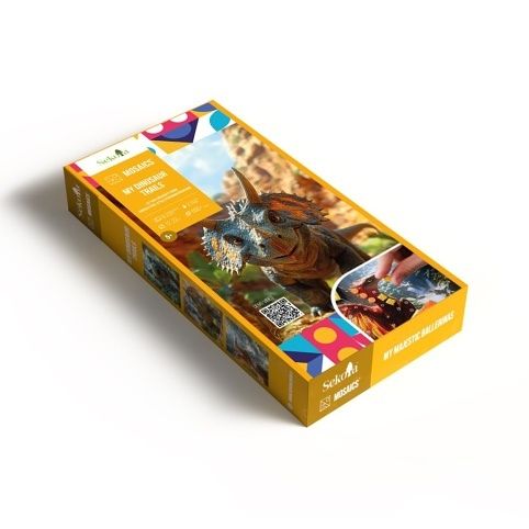 Vstupte do fascinujícího světa prehistorických dobrodružství s kreativní sadou Dinosauři, která dětem umožní vytvořit zářivé obrázky oblíbených dinosaurů pomocí barevných mozaikových kamínků. Každý obrázek se postupně promění v úchvatné umělecké dílo plné barev, fantazie a zábavy. Sada podporuje rozvoj jemné motoriky, soustředění i kreativity a nabízí klidnou, ale zároveň velmi zábavnou tvořivou činnost. Je ideální pro děti, které milují dinosaury, třpyt a kreativní tvoření. Obsah balení: 6 předloh s motivem dinosaurů, více než 500 samolepicích mozaikových kamínků a třpytek, barevné třídicí archy, aplikační nástroj, návod s QR kódem. Bez nepořádku – snadná a čistá práce. Vhodné pro děti od 5 let.