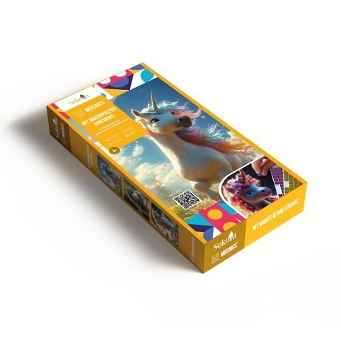 Vstupte do kouzelného světa Jednorožců s touto kreativní sadou, která dětem umožní vytvořit třpytivé obrázky magického jednorožce pomocí barevných mozaikových kamínků. Každý obrázek se postupně promění v zářící umělecké dílo plné pohádkové atmosféry, barev a fantazie. Sada podporuje rozvoj jemné motoriky, soustředění i kreativity a nabízí klidnou, ale zároveň velmi zábavnou tvořivou činnost. Je ideální pro děti, které milují jednorožce, kouzla, třpyt a kreativní tvoření. Obsah balení: 6 předloh s motivem jednorožce, více než 500 samolepicích mozaikových kamínků a třpytek, barevné třídicí archy, aplikační nástroj, návod s QR kódem. Bez nepořádku – snadná a čistá práce. Vhodné pro děti od 5 let.