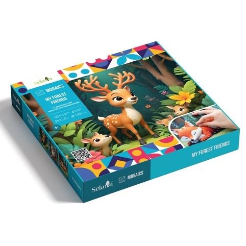 Vstupte do kouzelného světa lesa s kreativní sadou Lesní zvířátka, která dětem umožní vytvořit třpytivé obrázky roztomilých lesních zvířátek pomocí barevných mozaikových kamínků. Každý obrázek se postupně promění v zářivé umělecké dílo plné barev, fantazie a radosti z tvoření. Sada podporuje rozvoj jemné motoriky, soustředění i kreativity a nabízí klidnou, ale zároveň velmi zábavnou tvořivou činnost. Je ideální pro děti, které milují přírodu, zvířátka a kreativní tvoření. Obsah balení: 6 předloh s motivem lesních zvířátek, více než 1000 samolepicích mozaikových kamínků a třpytek, barevné třídicí archy, aplikační nástroj, návod s QR kódem. Bez nepořádku – snadná a čistá práce. Vhodné pro děti od 5 let.