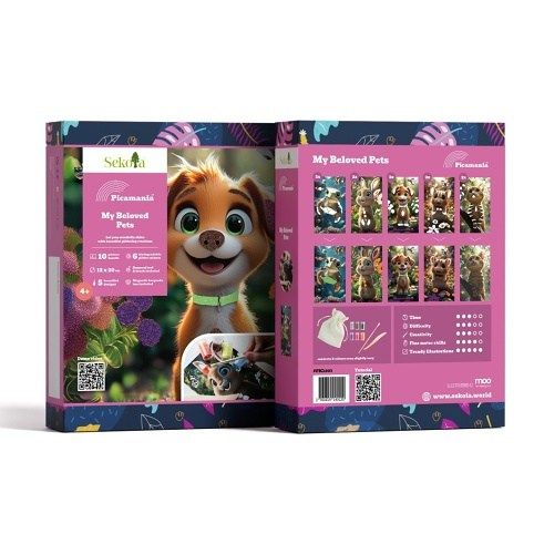 Vstupte do světa roztomilých zvířátek s touto sadou, která dětem umožní vytvořit 10 zářivých obrázků pejska, koťátka, králíčka, křečka a želvy pomocí barevných třpytek. Každý motiv se pod rukama dětí promění v oslnivé umělecké dílo plné barev a fantazie. Sada podporuje rozvoj jemné motoriky, soustředění i kreativity a nabízí klidnou a zábavnou tvořivou činnost pro všechny milovníky zvířat a lesku. Práce je snadná díky přiloženým nástrojům. Obsah balení: 10 pevných obrázkových předloh (5 designů po 2 ks), 6 barev biologicky rozložitelných třpytek, nástroj na odstraňování fólie, štěteček, magnetická krabička a návod s QR kódem pro demo video. Vhodné pro děti od 4 let.