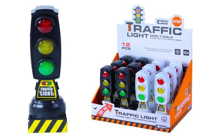Senzační semafor se světelným a zvukovým efektem. Semafor vyžaduje použití 3 ks baterií typu LR44, které jsou součástí výrobku. Výška semaforu je cca 13 cm. Tlačítko na pravé straně spustí světelnou signalizaci semaforu a zvuk. Zmáčknutím tlačítka na levé straně začnou hrát různé melodie spolu se světelným efektem.