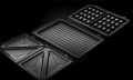 Možnost vybrat si ze 3 vyměnitelných ploch. Hluboká ploga pro sendvič, vafle, gril.