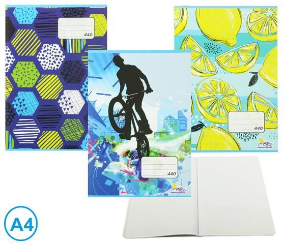 Školní sešit z kvalitního bezdřevého papíru, obálka z křídového papíru.Formát: A4Počet listů: 40Vzor: čistý bez linek