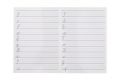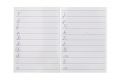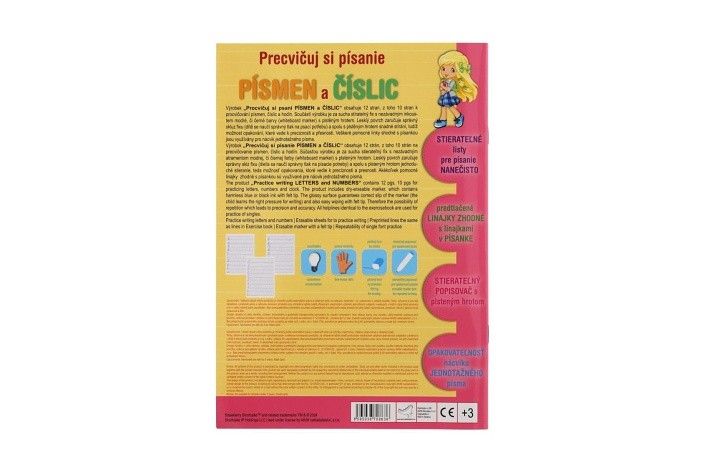 12 stran včetně obálky. Sešit vytvořen na základě doporučení poradny pedagogů. Sešit slouží k opakovanému nácviku písmen, číslic, hodin, předtištěné linky korespondují s linkami v písankách, lesklý povrch spolu s popisovčem zajišťuje opakovatelnost nácviku jednotažného písma.