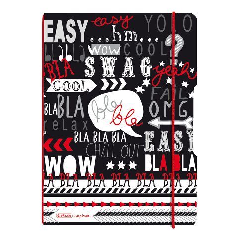 Sešit my.book flex Black&WOW Slogan A4/2x40 listů, 80 g/m2, plastové desky, zavírání s gumou, zaoblené rohy, perforace, děrování, 40 listů linka, 40 listů čtvereček