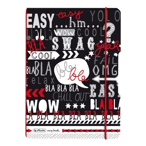 Sešit my.book flex Black&WOW Slogan A5/40 listů, 80 g/m2, plastové desky, zavírání s gumou, zaoblené rohy, čtvereček