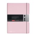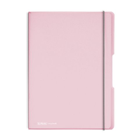 Sešit my.book flex Color Blocking indones, A4/2x40 listů, 80 g/m2, plastové desky, zavírání s gumou, zaoblené rohy, perforace, děrování, 40 listů linka, 40 listů čtvereček, růžový