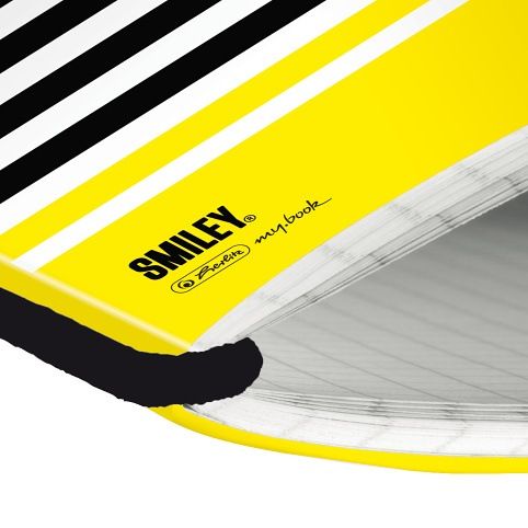 Sešit my.book flex SmileyWorld Black/Yellow Stripes A5/40 listů, 80 g/m2, plastové desky, zavírání s gumou, zaoblené rohy, čtvereček