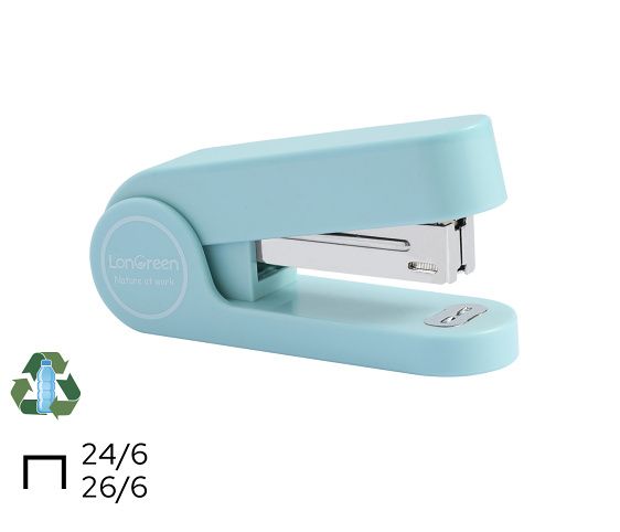 Drátky č.24/6, 26/6- sešití až 25 listů- ukazatel množství drátků v sešívačce- hloubka vkládání papíru: 50mm- možnosti sešívání: uzavřené- příjemné držení- protiskluz zespodu- kapacita: 50 drátků- rozměr: 115 x 60 x 25mm- vyrobeno z 55% recyklovaného plastu s certifikací GRS- barva: modrá