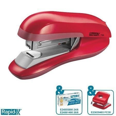 Sešívačka "F30", červená, s plochým sešíváním, 30 listů, RAPID
