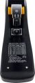 Celokovová konstrukce s předním nabíjecím mechanismem, protiskluzová základna, nastavitelná zarážka papíru se zámkem, sešívací rameno s gumovými body, otočné kopyto pro různé velikosti sponek, zásobník na náhradní sponky. drátky: 23/6 - 23/15 kapacita: až 140 listů hloubka vložení: až 70 mm