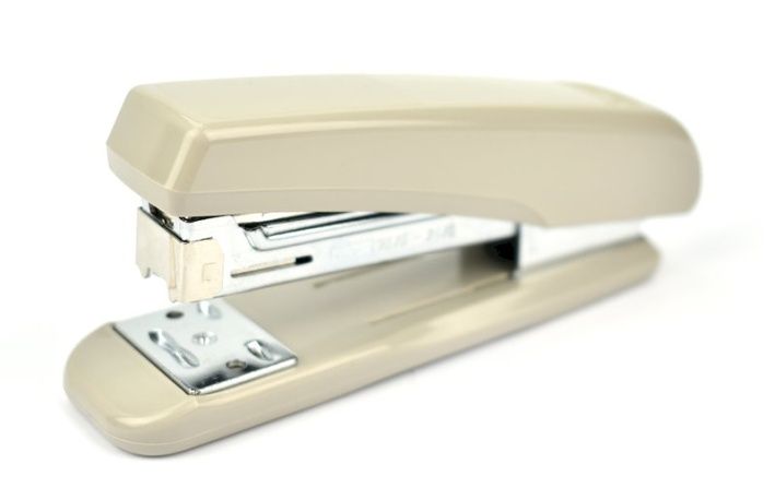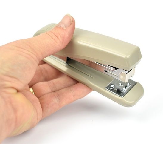 kovová sešívačka šedé barvy se zesílenou plastovou základnou