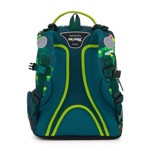 Školní batoh OXY GO zaujme moderním designem a promyšlenou funkčností. Má anatomicky tvarovaná, prodyšná záda a nastavitelné ramenní popruhy pro pohodlné nošení. Přidané háčky umožňují uchycení dlouhých popruhů. Vnitřní kapsy nabízí dostatek místa na učebnice, sešity i další potřeby, pevné nepromokavé dno chrání obsah před ušpiněním a protečením. Boční kapsy, jedna na zip a jedna otevřená, slouží např. na láhev. Reflexní prvky zajišťují bezpečnost. Batoh je ideální pro děti od 1. do 3. třídy vysoké od 125 cm. Délka zádového panelu je 39 cm, objem 22 l, hmotnost 930 g, nosnost 8 kg. Sáček: Praktický na cvičky nebo volnočasové aktivity, uzavírá se šňůrkami. Penál: Jednopatrový se dvěma chlopněmi, poutka na psací potřeby a průhledná fólie na rozvrh hodin.