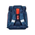 Batoh s ergonomickými zády je velmi stabilní, má pevné, rovné dno, takže se aktovka nepřevrátí. Na bocích a čelní straně má kapsy uzavíratelné na zip. Klopa batohu jde jednoduše otevřít a zavřít díky magnetickému zavíracímu systému Fidlock. Uvnitř průhledná kapsa na rozvrh hodin. Nastavitelné ramenní a hrudní popruhy. Reflexní prvky. Na batohu je odnímatelná klíčenka s motivem Spidermana.