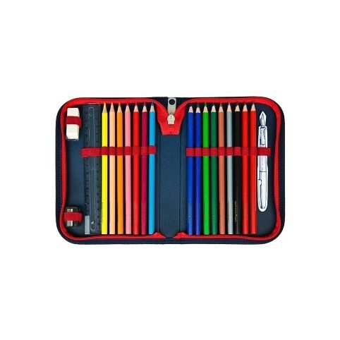 Penál obsahuje 14 pastelek, 2tužky, gumu, ořezávátko a pravítko, rozměr : 19,5 x 14 x 3 cm
