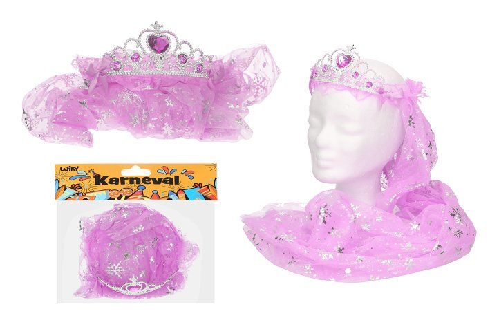 Čelenka se závojem na karneval. Modrá a růžová barva.