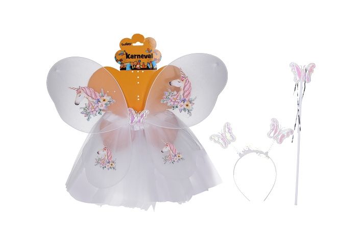 Obsahuje: sukně, křídla, hůlka, čelenka