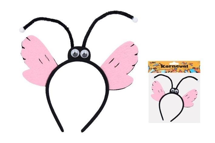 Roztomilá karnevalová čelenka s motivem motýla, s růžovými křídly a tykadly. Uvedená cena je za 1 ks.