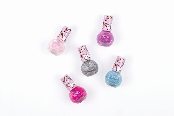 Máte doma malou parádnici, která se ráda zkrášluje? Pak ji jistě nadchne zkrášlovací sada, ve které objeví laky na nehty. Set obsahuje 5 laků na nehty o objedmu 5ml z toho 3 laky obsahují třpytky ve tvaru motýlků. Vhodné pro dívky od 8 let.