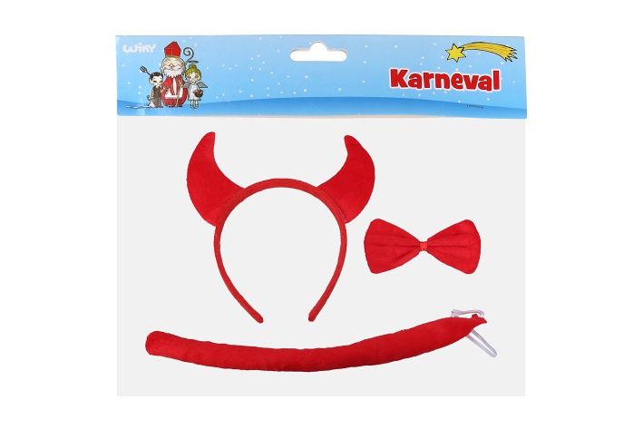 Set obsahuje: čelenku s růžky, motýlka a ocas