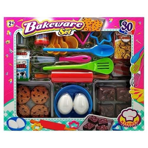Pečící sada s plastovými maketami jídla. Super doplněk do dětské kuchyňky. Vyrobeno z velmi kvalitního plastu.
