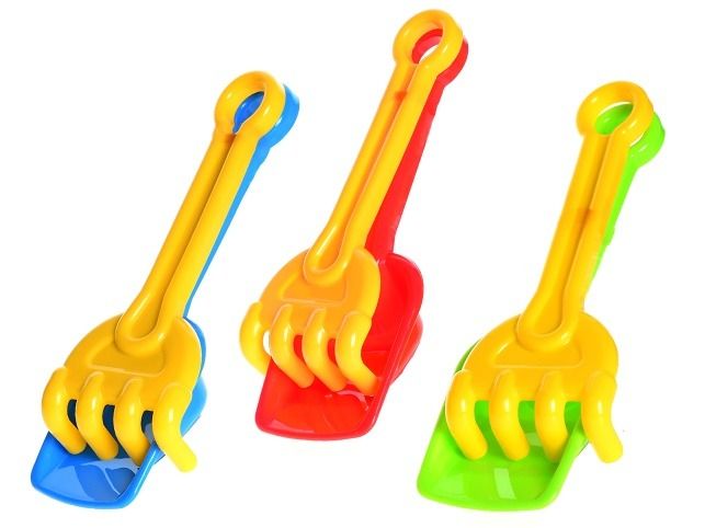 Klasické dětské plastové hrabičky a lopatka na písek pro děti na pískoviště. Hurá na pískoviště!!! Aby na něm byla zábava, nesmí tam chybět letní hračky na písek! Pro krásné stavby na písku je potřeba především pořádné náčiní. Vyrobeno z kvalitního plastu.