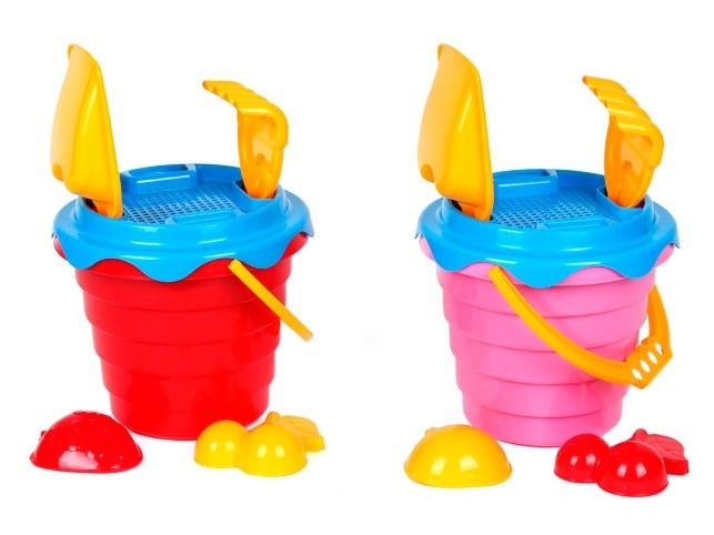Hračky na písek využije na dovolené u moře, na dětském hřišti nebo na zahradě celá rodina. Sada obsahuje kbelík velikosti cca 12 cm, sítko, lopatku, hrabičky a 2 bábovičky.