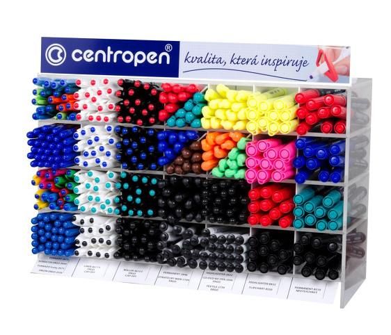 Prezentační plastový stojánek obsahuje 13 typů neprodávanějších výrobků značky CENTROPEN v osmi barevných odstínech.Rozměry: 35 x 44 x 13 cm