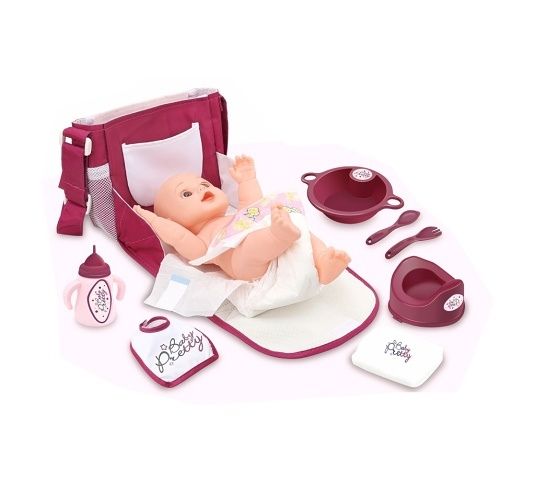 Sada pro péči o tvou panenku. Taška je lehce přenosná, sbal si vše, co potřebuješ a na bok umísti láhev pro panenku.