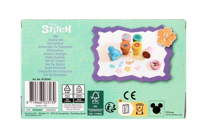 Kreativní sada razítek s oblíbenými motivy ze seriálu Stitch potěší všechny malé milovníky pohádek. V balení najdete 15 ks razítek s motivy Stitch, barevný polštářek na otisk a další doplňky, se kterými lze snadno vytvářet originální obrázky, přáníčka nebo ozdobit školní sešity.