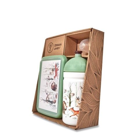 Set obsahuje Zdravou lahev 0,5 l, náhradní zátku, krytku Floppy a svačinový box Zdravá sváča. Lahev a box s Lesními zvířátky. Zdravá lahev 0,5 l i svačinový box se hodí na výlety i školní svačiny. Díky ideální velikosti krabičky, posuvné vnitřní přepážce a odolnému materiálu budete mít svačinu vždy při sobě. Panty boxu umožňují odejmutí víčka. Tento set představuje unikátní české produkty vyrobené z polypropylenu určeného pro lékařské a farmaceutické využití. Materiál omezuje šíření plísní a zápachu, neobsahuje ftaláty, změkčovadla ani BPS.