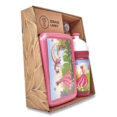 Set obsahuje Zdravou lahev 0,5 l, náhradní zátku, krytku Floppy a svačinový box Zdravá sváča. Lahev a box s Princeznou a jednorožcem. Zdravá lahev 0,5 l i svačinový box se hodí na výlety i školní svačiny. Díky ideální velikosti krabičky, posuvné vnitřní přepážce a odolnému materiálu budete mít svačinu vždy při sobě. Panty boxu umožňují odejmutí víčka. Tento set představuje unikátní české produkty vyrobené z polypropylenu určeného pro lékařské a farmaceutické využití. Materiál omezuje šíření plísní a zápachu, neobsahuje ftaláty, změkčovadla ani BPS.