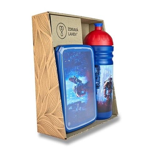 Výhodné balení obsahuje Zdravou lahev 0,7 l, náhradní zátku, krytku Floppy a svačinový box Zdravá sváča. Lahev a box v motivu Cyberpunk, Zdravá lahev 0,7 l i svačinový box se hodí na výlety i školní svačiny. Díky ideální velikosti krabičky, posuvné vnitřní přepážce a odolnému materiálu budete mít svačinu vždy při sobě. Panty boxu umožňují odejmutí víčka. Tento set představuje unikátní české produkty vyrobené z polypropylenu určeného pro lékařské a farmaceutické využití. Materiál omezuje šíření plísní a zápachu, neobsahuje ftaláty, změkčovadla ani BPS.