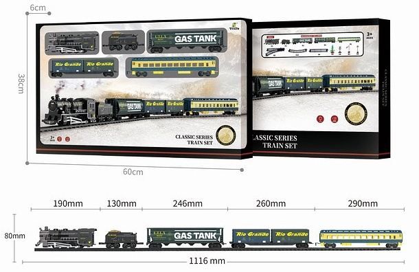 Set železnice - Parní lokomotiva s vagóny a příslušenstvím