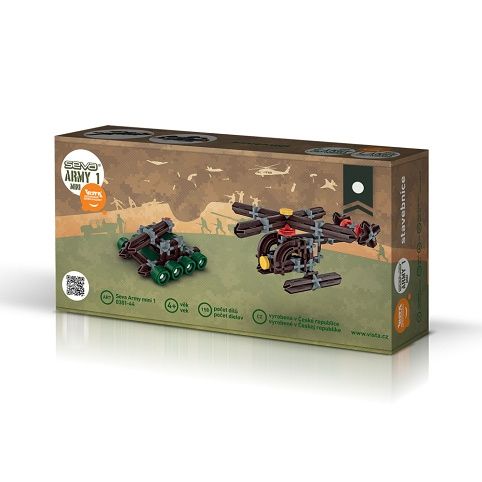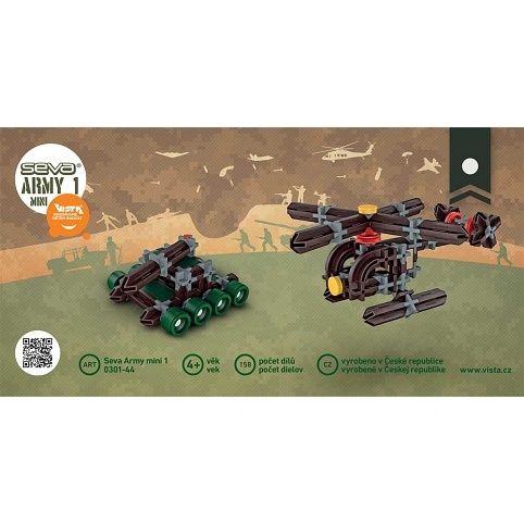 Stavebnice Seva ARMY mini 1 obsahuje 158 dílků, ze kterých si můžete sestavit vojenskou techniku jako je např. letadlo, tank apod.