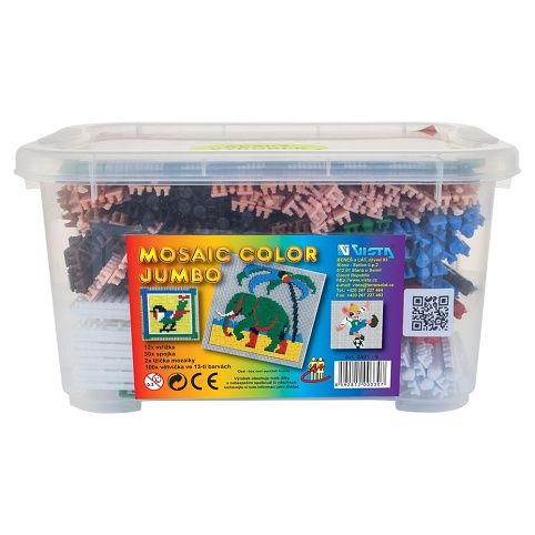 Stavebnice Mosaic Color Jumbo obsahuje 4244 dílků ve 12 barvách! Složte si svou mozaiku z barevných dílků podle předlohy nebo své představy. Balení vhodné pro školky. Určeno pro děti od 6 let.