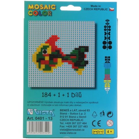 Stavebnice Mosaic Color 2v1 Rybička obsahuje 186 dílků ve 4 barvách - zelená, žlutá, černá, červená. Poskládejte si rybičky nebo cokoliv dle vaší fantazie. Určeno pro děti od 4 let.