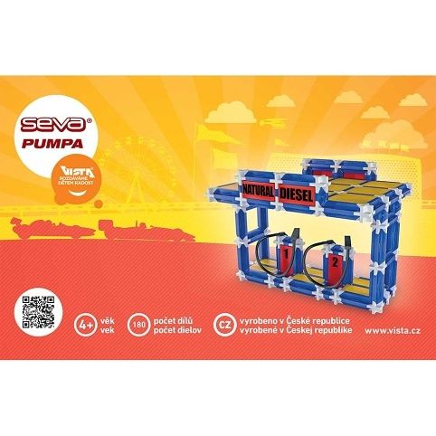 Naberte si plnou a vyražte za dobrodružstvím. Postavte si originální čerpací stanici. SEVA pumpa obsahuje unikátní díly pro stavbu čerpací stanice.