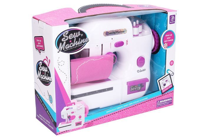 Šicí stroj. Velikost 24cm. Baterie 4xAA nejsou součástí. Obsahuje kousky látky, navlékač jehel, metr. USB kabel součástí.