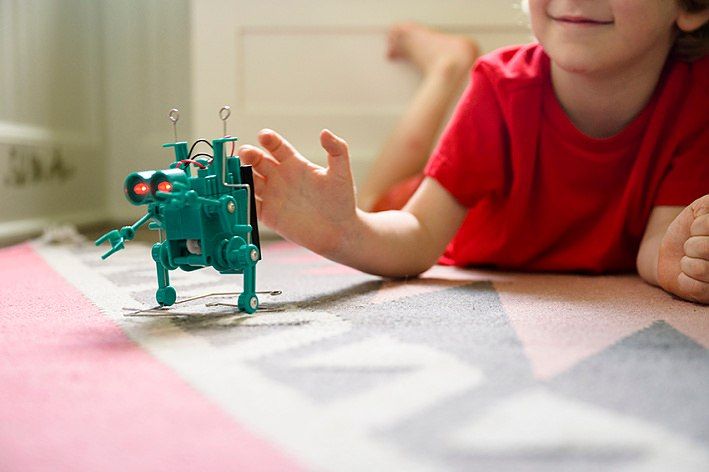 Objevte vědu s tímto neobvyklým robotem, který se pohybuje zábavným a bizarním způsobem. Jeho LED oči se rozsvítí takže vypadá jako chodící pochodeň.