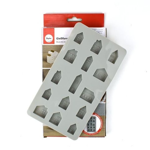 Formy na odlévání nabízejí mnoho možností, jak efektně tvořit dekorace nebo dárky.S touto silikonovou formou vytvoříte domečky v různých velikostech. Snadno je odlijete třeba kreativním betonem, odlévací hmotou Reliefco nebo Keraflotem. Po zatvrdnutí hmoty si domky můžete hned vystavit nebo vymalovat akrylovými barvami. Můžete také použít akrylové popisovače Posca, vaše tvoření bude ještě zábavnější a jednodušší.